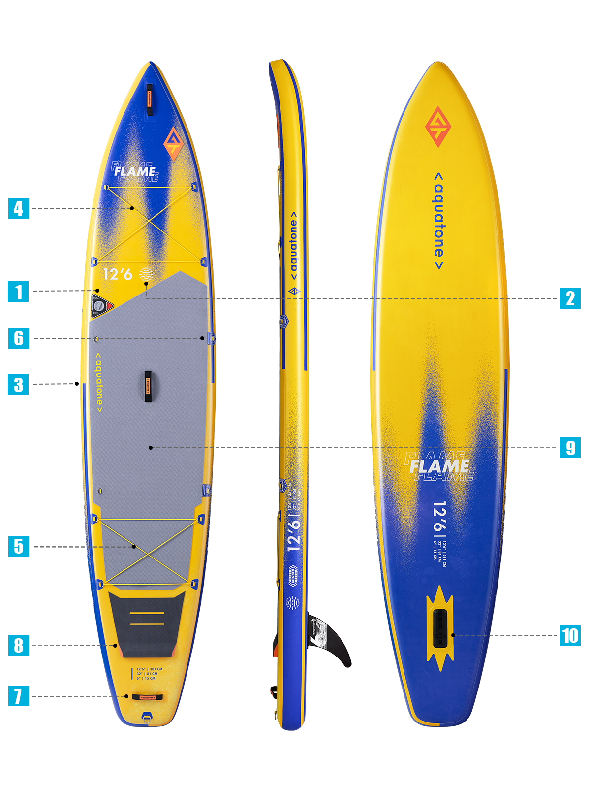 THE FLAME 3.0 FEATURES A STRIKING, ORIGINAL GRAPHIC DESIGN INSPIRED BY FLAMES, WITH BOLD SUNBURST AND TWILIGHT BLUE COLOR CONTRASTS. ITS HIGH-IMPACT VISUALS MAKE YOU STAND OUT ON THE WATER, COMBINING HIGH AESTHETICS WITH OUTDOOR ADVENTURE PERFORMANCE.