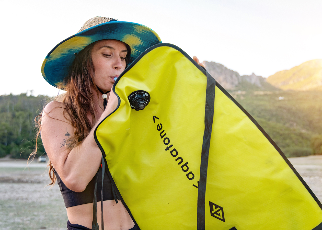 THE 3-IN-1 BACKPACK ALSO DOUBLES AS AN INFLATABLE SEAT. SIMPLY PLACE IT ON THE DECK AND SECURE IT WITH THE ATTACHED STRAPS THROUGH THE SIDE LOOPS. THIS INFLATABLE CUSHION SEAT PROTECTS YOUR TAILBONE FROM IMPACTS, KEEPS YOU DRY, AND ADDS HEIGHT FOR IMPROVED ERGONOMICS AND COMFORT WHILE PADDLING.